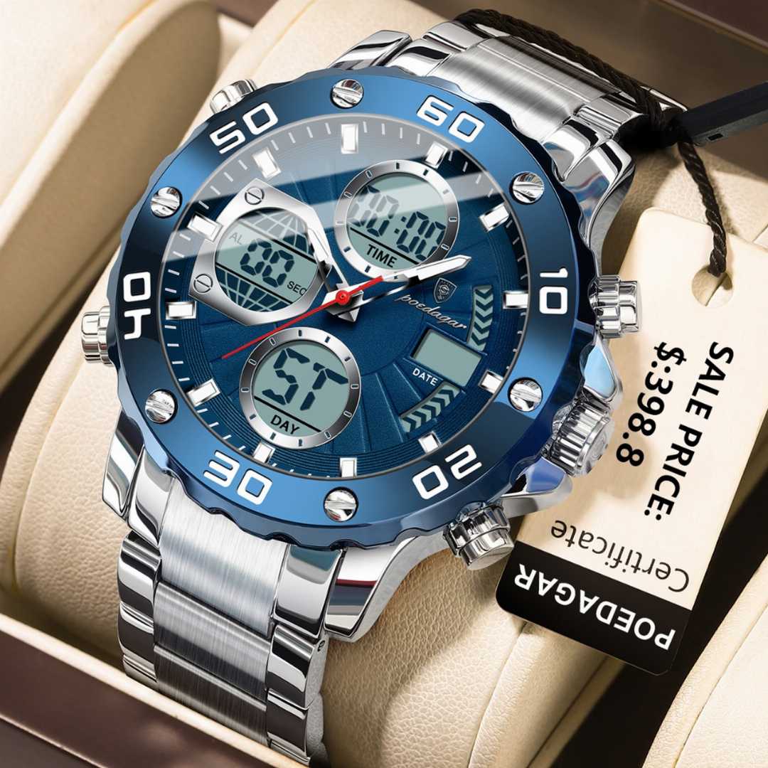 POEDAGAR PE102 Luxury Men’s Stainless Steel Analog Quartz Watch