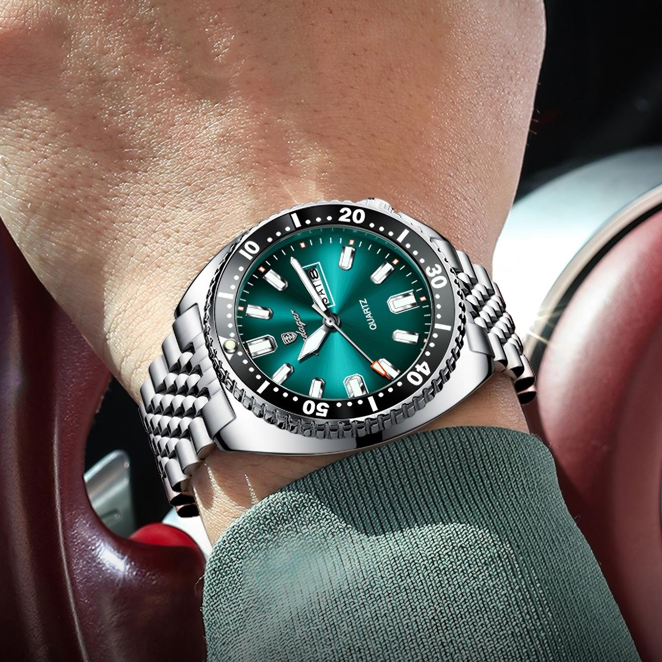 POEDAGAR 682 Men Luxury Quartz Watch 47MM Stainless Steel Strap Waterproof Luminous Hands Watches Dual Calendar